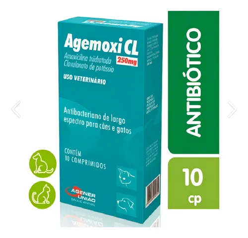 Agemoxi CL é um antimicrobiano oral para cães e gatos à base de amoxicilina associada ao ácido clavulânico (clavulanato de potássio). Indicado para o tratamento de infecções bacterianas sensíveis à amoxicilina, é uma opção de amplo espectro que combina ação bactericida da amoxicilina com a proteção do clavulanato contra enzimas bacterianas que degradam o antibiótico.
