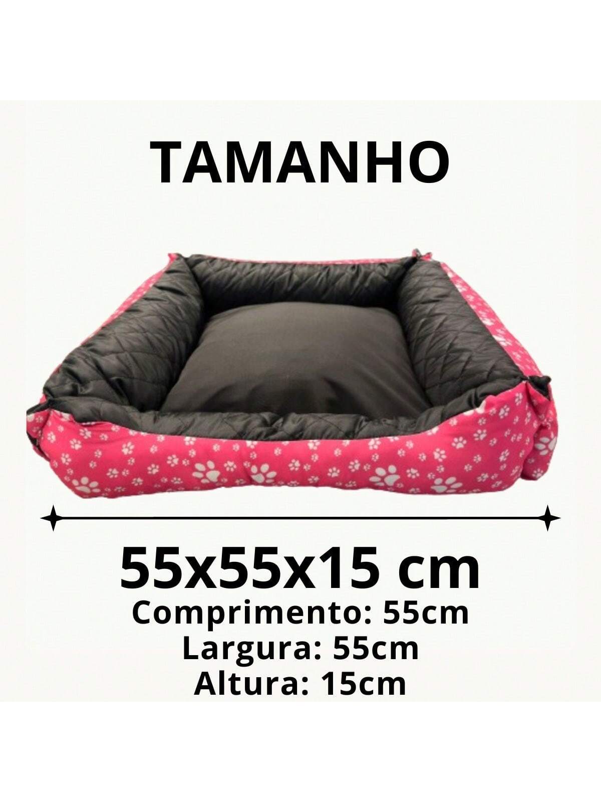 MÉDIO: 55cm (comprimento) x 55cm (largura) x 15cm (altura).