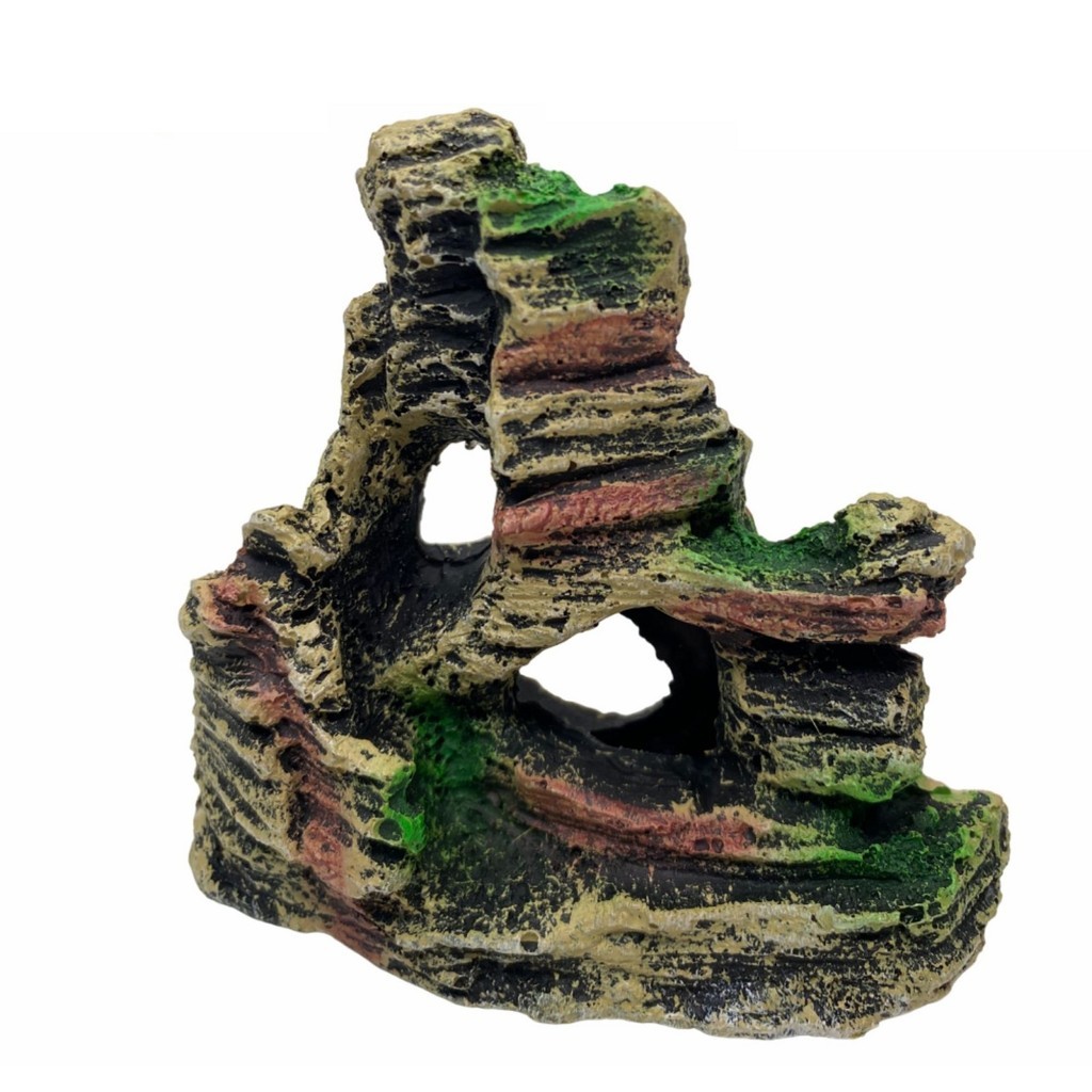 Este é um ornamento de resina moldada que reproduz a aparência de cascalho/rochas formando pequenas cavidades — ideais como casinha e esconderijo para peixes. Indicado para: