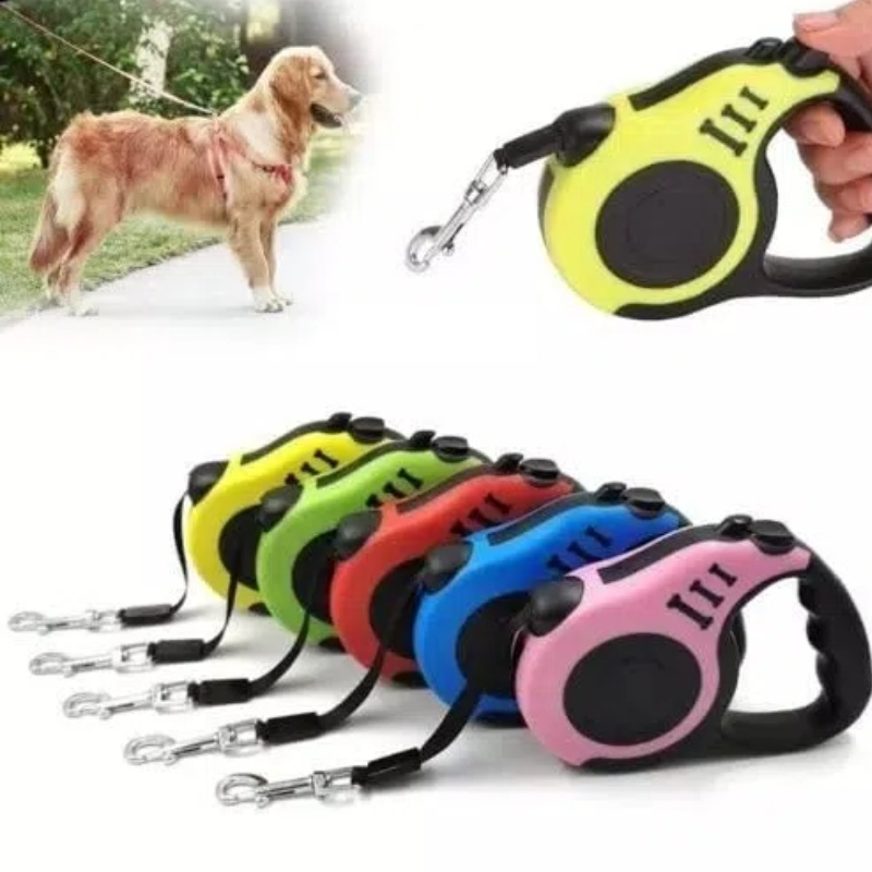 Coleira Guia Retrátil Elástica — 3m / 5m para Cães e Gatos