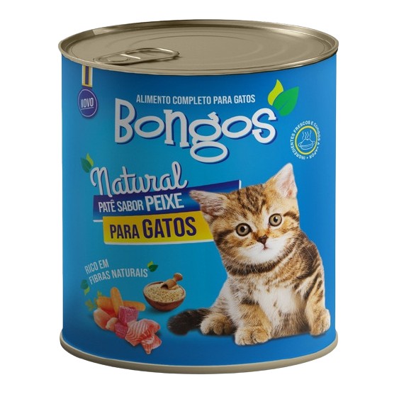 A Ração Úmida Patê Bongos é um alimento enlatado preparado com pedaços de carne bovina, carne de frango e carne de peixe, além de miúdos de suíno, vegetais e ingredientes funcionais. (Informação do fabricante). Vem em latas de 280 g, vendidas em fardos com 12 unidades, todas do mesmo sabor (não são misturados).