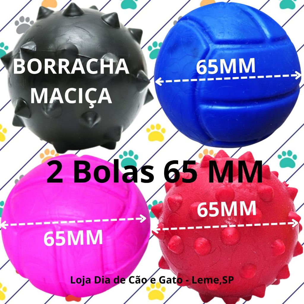O kit traz 2 bolas com 65 mm de diâmetro projetadas como brinquedo para cães — ideais para buscar, rolar, brincar sozinho ou em interação com o tutor. Há duas opções de superfície: