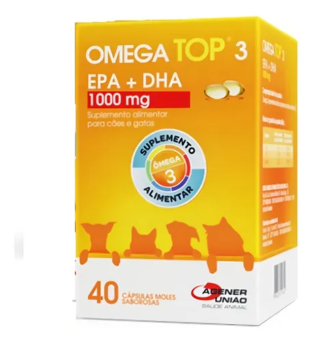 Omega Top 3 C é um suplemento nutricional indicado para cães e gatos que necessitam de suplementação de ácidos graxos ômega‑3 e antioxidantes. Segundo informação do fabricante, a fórmula utiliza tecnologia que reduz o cheiro de peixe, tornando a administração mais fácil para tutores e mais atrativa para os animais.