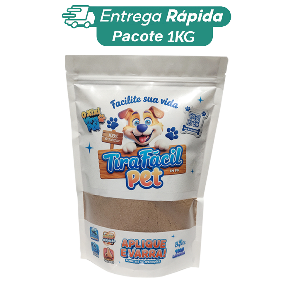 O Pó Higiênico Tira Fácil 1KG é um absorvente granulado perfumado com citronela, desenvolvido para a limpeza rápida de resíduos sólidos e líquidos de cães e gatos — como fezes, xixi e vômito. Indicado para tutores que querem uma solução prática para limpeza doméstica, donos de apartamentos, criadores e quem busca reduzir o uso de água e sacos plásticos no dia a dia.