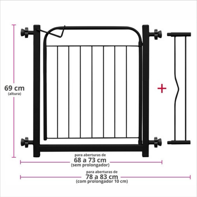 Grade / Portão para Cães e Bebês — Portãozinho com Prolongador (69 a 84 cm)
