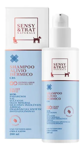 O Shampoo Alívio Dérmico Sensy & Trat Cães e Gatos 200ml (Fragrância Aloe vera) é um produto formulado para o banho e hidratação de peles xeróticas (secas) e sensíveis (atópicas). Segundo informação do fabricante, funciona como adjuvante nos tratamentos de dermatopatias, promovendo alívio do prurido e da descamação, além de melhorar sinais de irritação cutânea. Indicado para tutores que buscam um cuidado diário ou complementar em animais com tendência à pele seca, descamação ou sensibilidade.