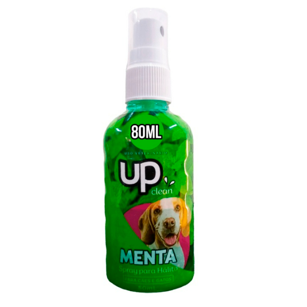 O Spray Bucal Up Clean 80ml é um refrescante bucal formulado para cães e gatos, indicado para reduzir o mau hálito e colaborar com a higiene oral diária. Segundo a embalagem (informação do fabricante), combina aroma tutti frutti com toque de menta, oferecendo frescor imediato após refeições ou quando necessário. Indicado para animais a partir de 2 meses e para portes pequeno, médio e grande.