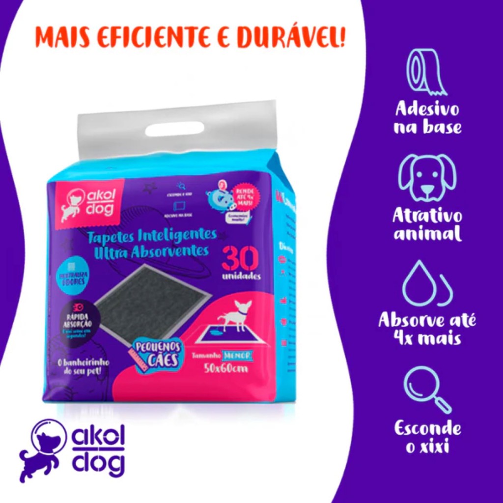 Se busca um tapete higiênico com foco em absorção, controle de odor e economia de uso, o Tapete Higiênico Akol Dog Carvão 50×60 é uma opção técnica e prática para integrar a rotina de higiene do seu pet.